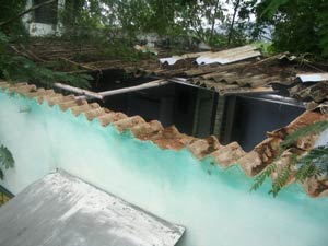 We would very sadly like to share our problem with you all that, our office building was severely collapsed by wild storm on last 24th April. Fortunately no one was injured by this disaster. I am sending 6 photographs one by one to you all to make the understanding on range of damages for the building. I hope that you could recognize this premise and realize the importance of its space for our entire activities. Indeed we are in very tragic position and so troubled to manage our routine works.